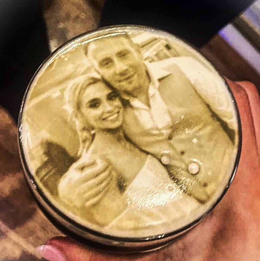 "Can't thank you enough for making our big day even more memorable. It was a total hit with everyone they novelty of having their pictures on their drinks and the prints came out perfect!"